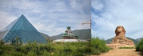 Точната реплика на емблематичното съоръжение в Париж е разположено отляво на фалшивия египетски сфинкс. В този момент се прави и пълно копие на древния пекински храм на Небето.