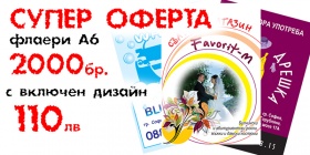 2 000 бр флаери А6 с включен дизайн само за 110 лв без ДДС.