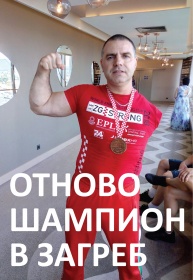- Да, един от най-големите турнири, провеждащи се в Европа. Бившия "Сокол Марич", сега наречен ZG Zagreb! За втора година и с участието на хора с увреждания. Като аз го спечелих и предната година. 12 бяха общо участниците при хората с увреждания, но се играе на ниска маса заради хората на колички! Това е по-неудобната за мен позиция, неестествена за мен, защото се подготвям на висока маса за европейски и световни, аз играя прав. При лично мое тегло от 83кг оставих зад мен на 2-ро място, един от добрите унгарци, който е с тегло 120кг. А на трето място е състезател от Индия отново с тегло над 100кг.